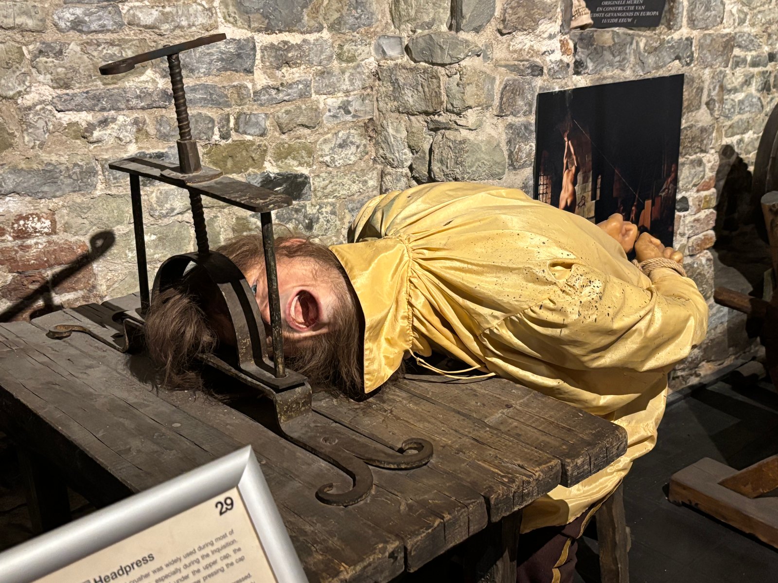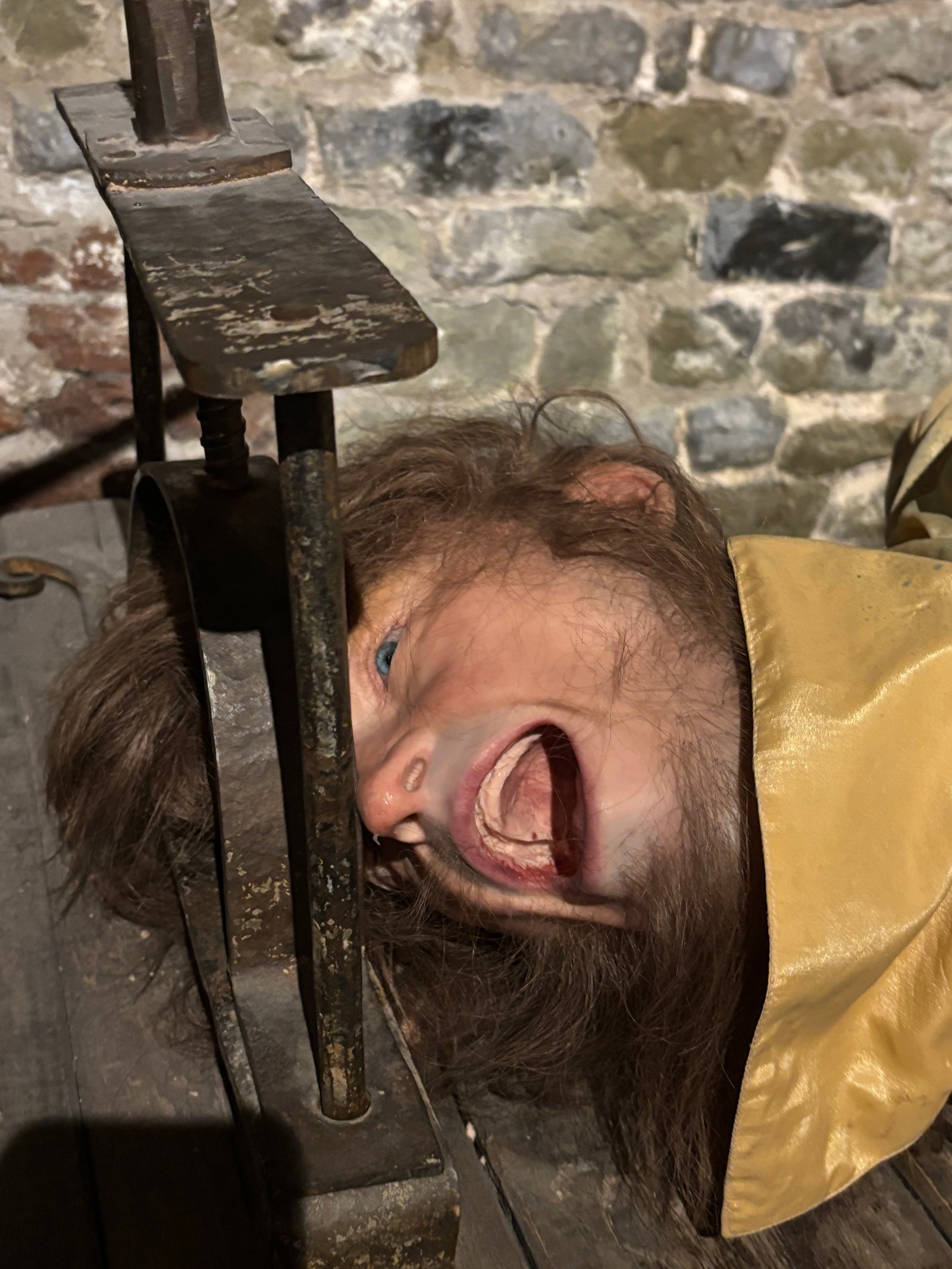 Om me alvast een beetje te verdiepen in de “gezellige” materie van de Middeleeuwse strafmaat, toog ik samen met een dierbare vriend naar Brugge. Daar kun je het Torture Museum bezoeken. Whooo, welk een inspiratie aldaar! Ideeën in overvloed nu. Brugge staat al bekend om haar prachtige oude straatjes, pleintjes en historische gebouwen.