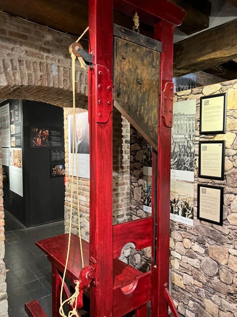 De Franse arts Joseph-Ignace Guillotin drong tijdens de Franse revolutie aan op een snellere en pijnloze methode van terechtstelling. De veroordeelde werd met zijn buik op de houten constructie geplaatst met het hoofd in een speciaal schot die daarna met een snelle beweging door een verzwaard schuinaflopend mes vanuit de hoogte van het lichaam werd gescheiden.
